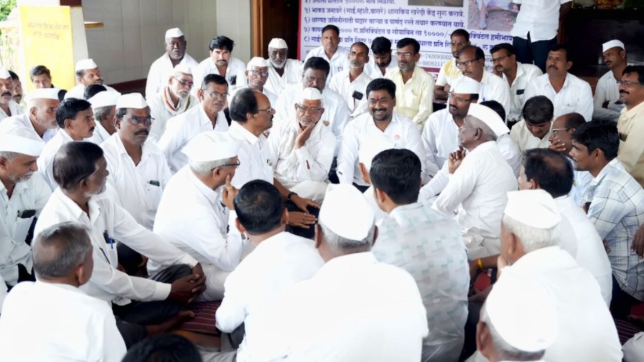 कानगाव (ता. दौंड) येथील गेले तेरा दिवस विठ्ठल मंदिर परिसरात सुरू असलेल्या शेतकरी धरणे आंदोलनाला दौंड तालुक्याचे माजी आमदार रमेश आप्पा थोरात यांनी मंगळवार, दि. ३० रोजी भेट दिली. यावेळी त्यांनी शेतकऱ्यांशी सविस्तर चर्चा करून आंदोलनातील मागण्या शासनापर्यंत पोहोचवण्याचे आश्वासन दिले. शेतकरी हिताच्या सर्व मागण्या तातडीने मान्य करून निर्णय घ्यावा यासाठी राज्याचे उपमुख्यमंत्री अजित पवार यांच्याशी संपर्क साधण्याचे व योग्य धोरण राबवण्याचे आश्वासनही त्यांनी आंदोलकांना दिले.